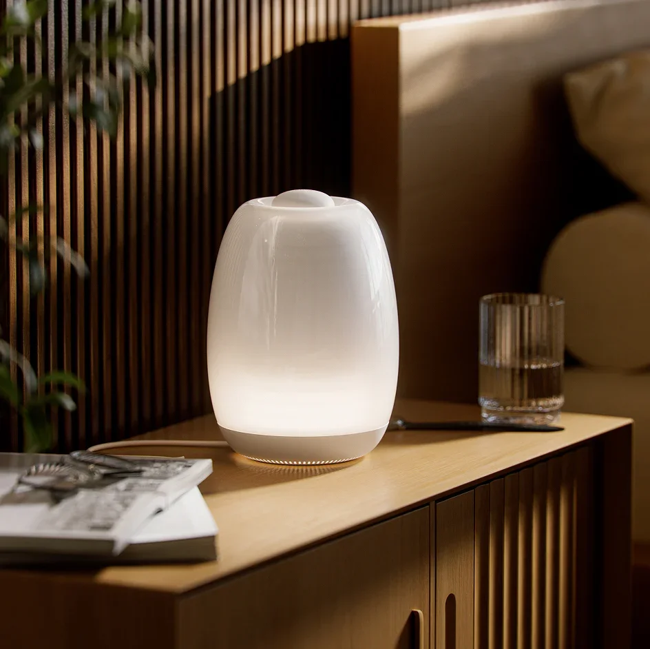 The Ohm Resonance Lamp is not a wearable or an app — it’s a sensory biofeedback device that lives in the home and guides your breath using synchronized patterns of light, sound, and touch. Users hold a small sensing stone that reads heart and breath rhythms, and the lamp responds in real time to help the body enter resonance — a physiological state linked with increased calm, stability, and resilience. Ohm Health believes calm isn’t something you find — it’s something you practice. By translating decades of nervous system research into an intuitive, calming experience, the brand helps people reconnect with their physiology and build daily habits that improve clarity, rest, and wellbeing.